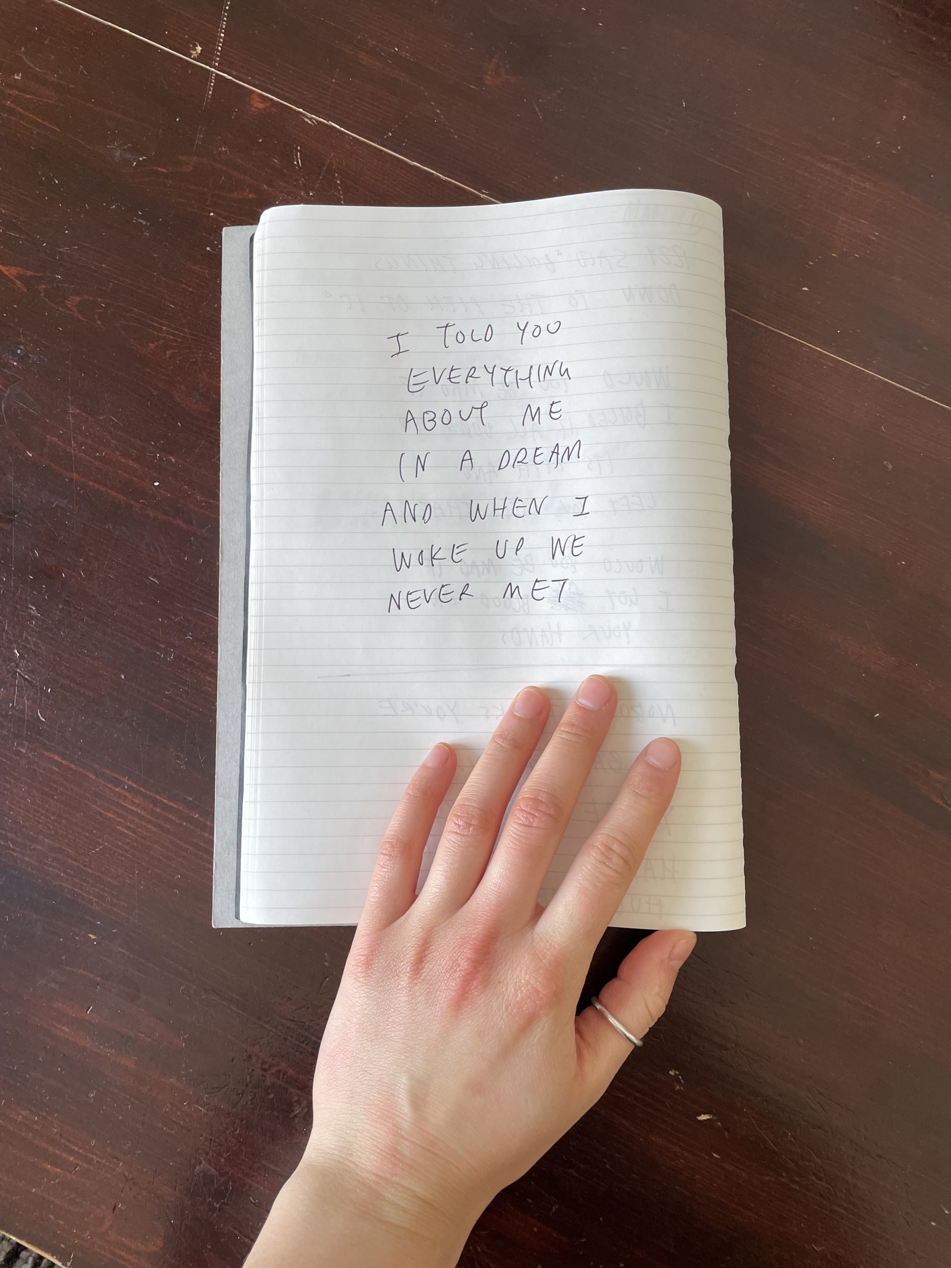 When I asked Meg about her writing process or lack thereof she naturally resonated with the latter, agreeing that her best work is born in an organic and casual fashion, inspired by her surroundings, inner emotions and phrases uttered by the company she keeps. Like any writer, she brings her notebook wherever she goes – setting down her purse on the coffee table before pulling out her little black book to demonstrate her process “it’s just the perfect size” she remarks flipping through the pages covered in scrawls of written work.