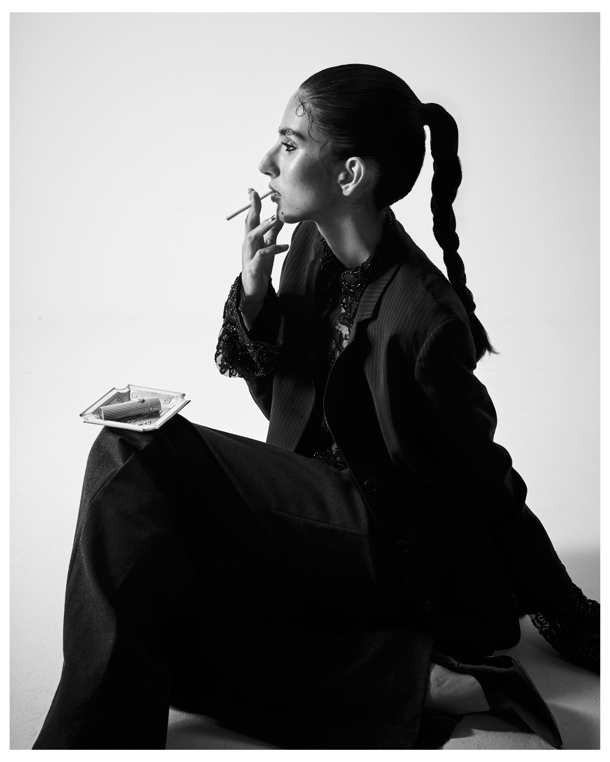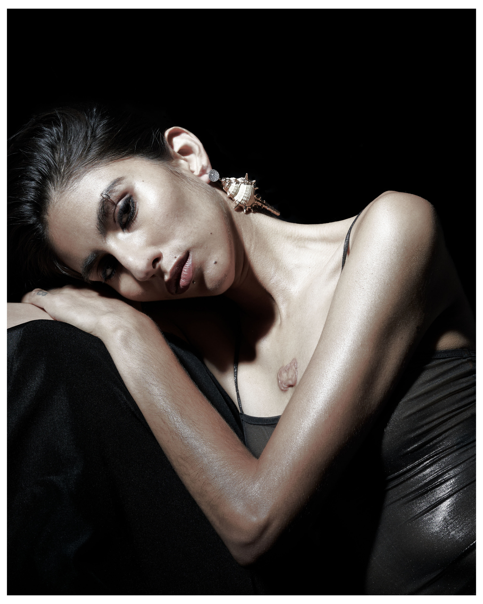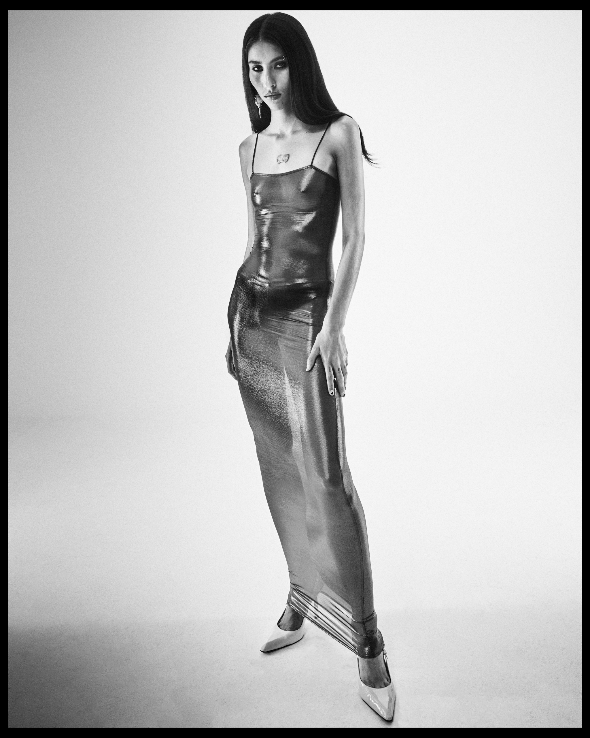 Brooklyn-based photographer Christopher Bucello and stylist Samantha Mendez take us through a series of captivating images in their exclusive new editorial for Liminul, Seeing Red. Drenched in rich shades of red, a colour that emerged organically whilst shooting, the series is inspired by the gritty nostalgia of a New York lifestyle and re-imagined through a modernist lens. Each look presents an air of sophistication paired with dark, shadow-infused sex appeal: a high-femme ensemble replete with sequined hot pants and crimson lace-topped thigh-high stockings; a liquid-metallic, gunmetal gown; and a tailored Dolce & Gabbana suit all coalesce to inform a visual dialectic of androgyny.