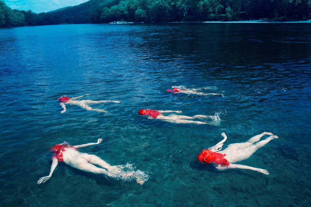 The first book by photographer Shae Detar, titled Another World, depicts a perfect world inhabited entirely by women. The pages of the book are vividly saturated with color, showing the subjects of the artist roaming through vast, natural landscapes in complete nudity. The use of bright colors makes the women appear almost superhuman. In this world, women are free from external dangers and judgmental gazes, making them feel liberated and powerful. They don’t have to worry about their safety or appearance and are free to express themselves fully.