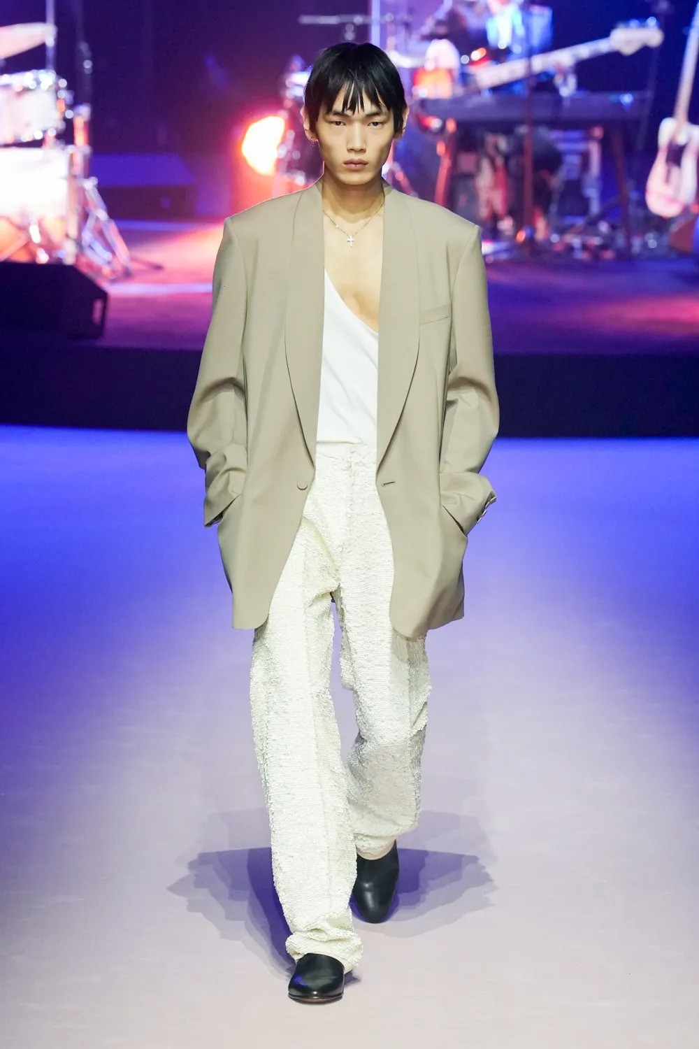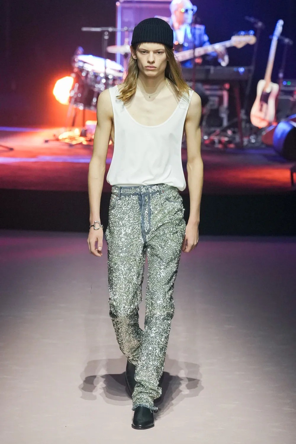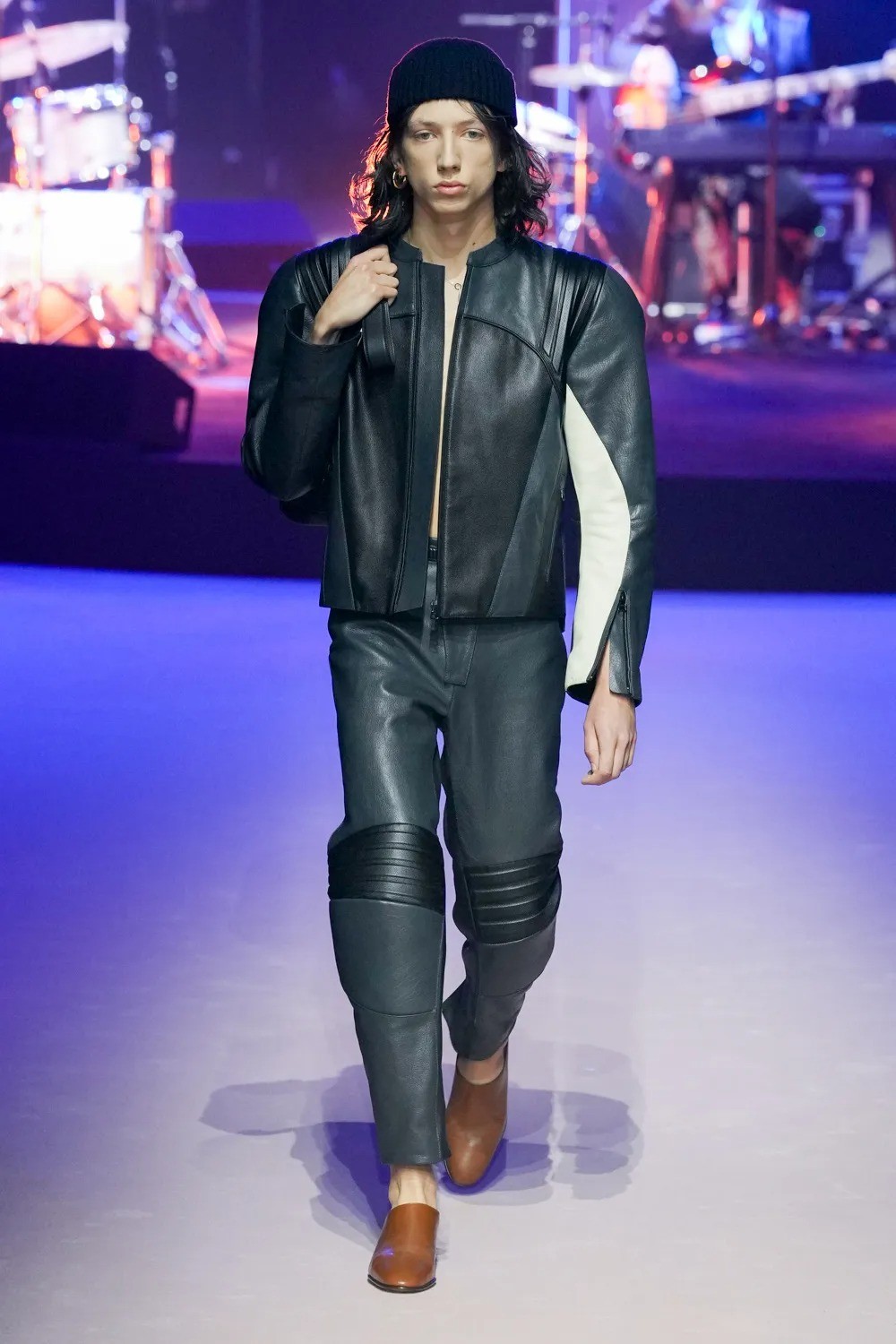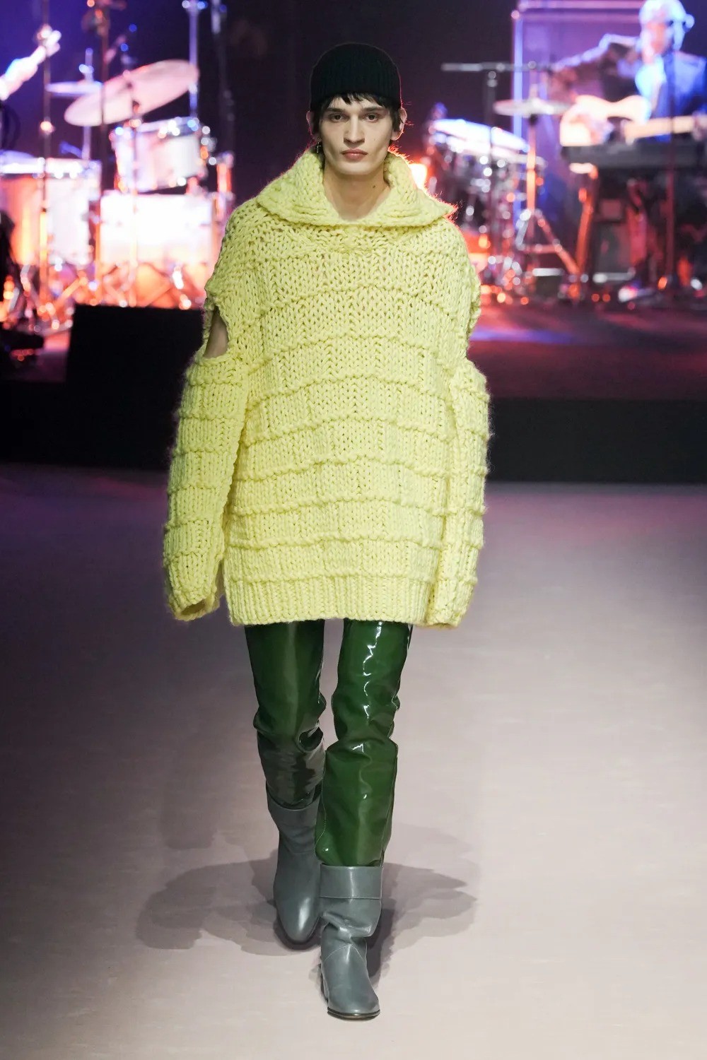 There were shades of Hedi Slimane’s new wave sartorial universe, with the distinctive chic eclecticism which brought Bottega Veneta into the limelight in years past. Silhouettes were oversized, while colours and textures were loud and varied.