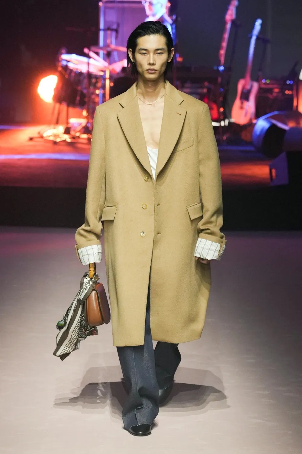 Gucci presented its latest collection at Milan Fashion Week during the menswear round of the show, which was designed in-house by a team closely affiliated with Michele. Together, the team embraced an ethos of improvisation, and the result is a collection resolutely pared back from Michele’s baroque eclecticism. Sleek, sexy, and irreverent, the line was half Michele, half house codes from eras past, with distinct nods to the 90’s heyday Gucci enjoyed with Tom Ford at the helm.