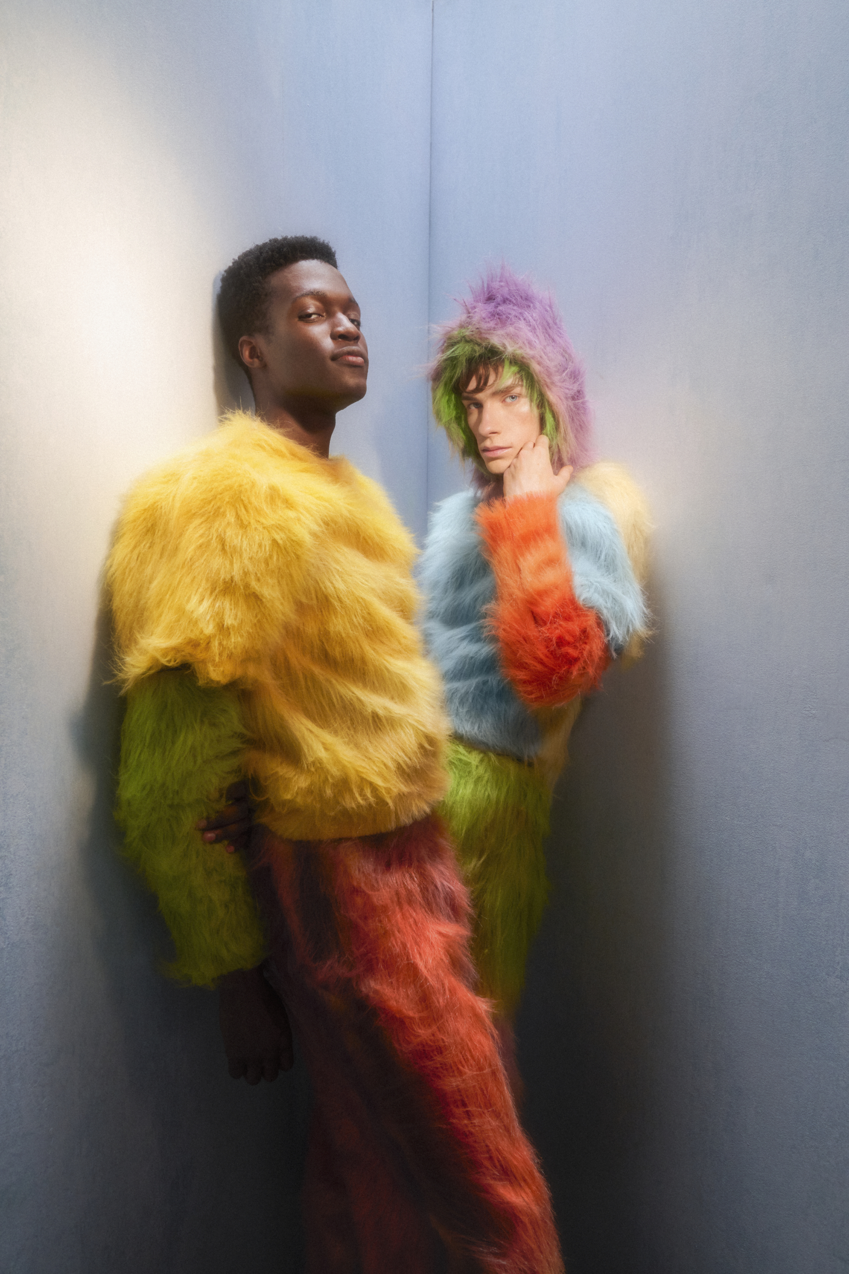 Costume plays a central role in the film’s tone. The characters, encased in Jay Forrest’s mascot-like designs, sit in a space between human and hyperreal. “The costume design process wasn’t clearly defined from the start. It evolved alongside our growing clarity about the narrative, which gradually took on an almost sci-fi dimension. Initially, we imagined outfits rooted in reality, but to stay true to the slightly off-kilter world we were building and to shape truly singular characters, we ultimately embraced more surreal costumes that added a layer of intrigue.” The garments, threaded with hair, move the bodies back toward something instinctive. “The urge to attract, to seduce, and the self-consciousness that comes with it are deeply embedded in our DNA, woven into our very survival as mammals.”